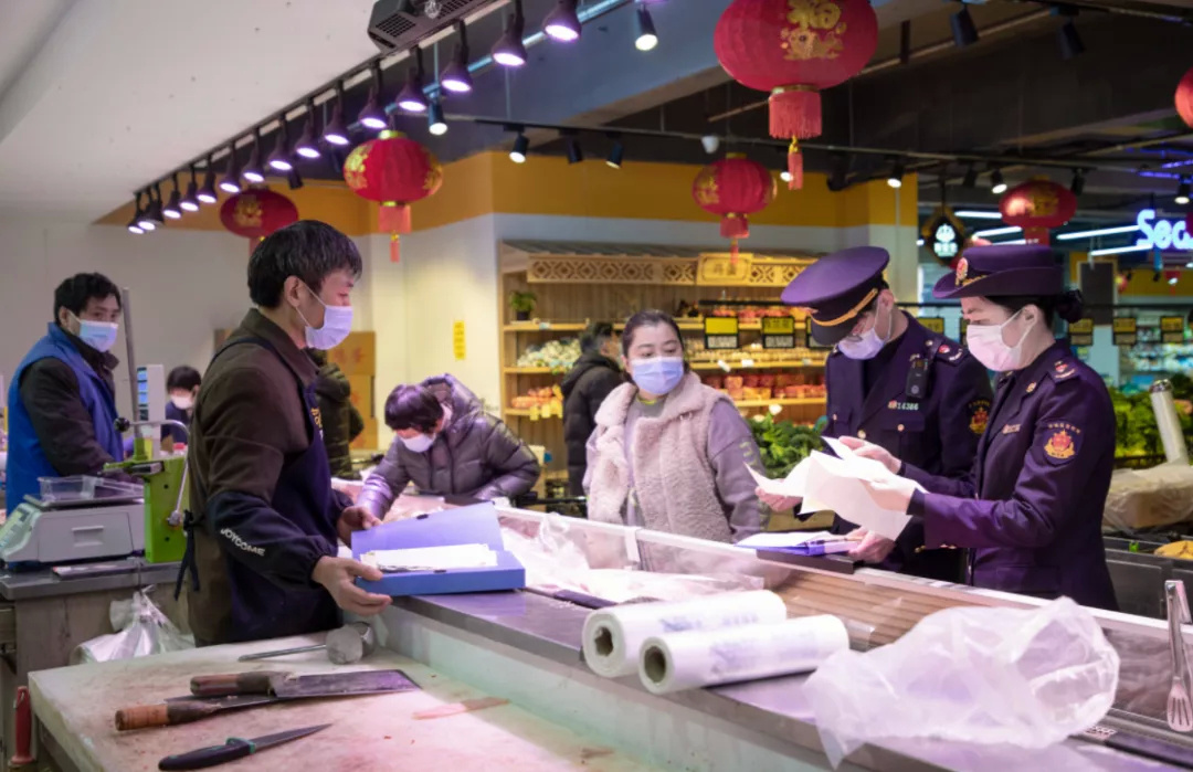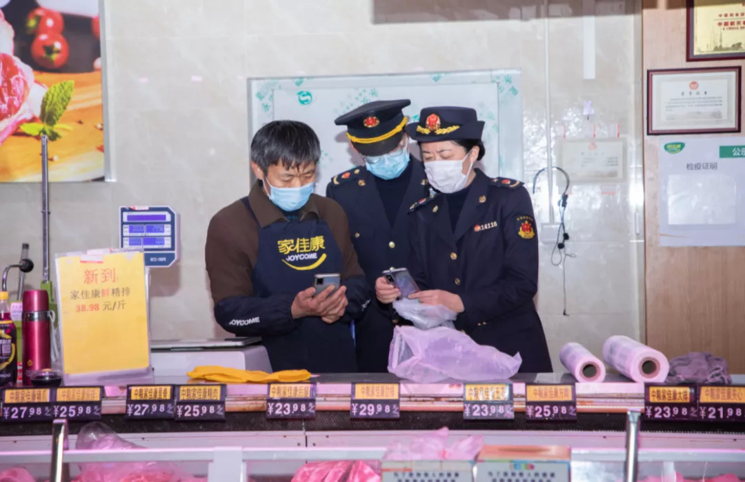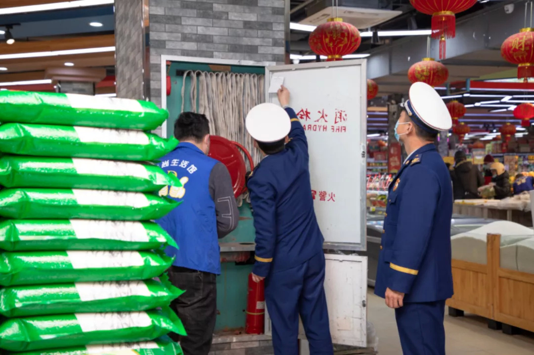 商超市场监管执法人员对场所《营业执照》规范、经营范围、期限,节日食品购进渠道、进货验证、索证索票、检疫检验等方面开展监督检查。