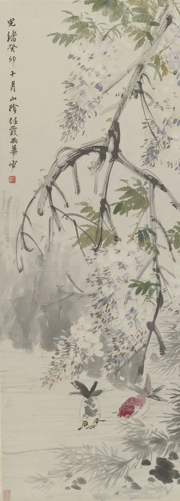 • 清 任霞 紫藤金鱼图轴 上海博物馆藏