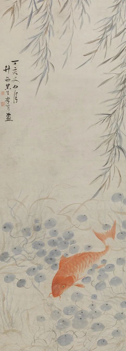 • 清 李育 柳塘赤鲤图轴 上海博物馆藏