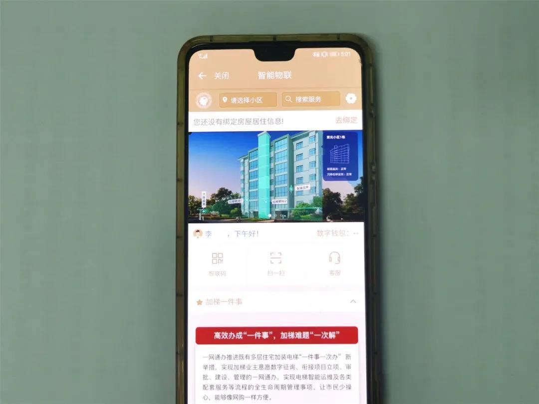 作为全市首个试点街道,北新泾的居民可抢先体验全市首个“加梯一件事”数字系统,进入随申办APP或网页端,搜索“智能物联”进入对应版块,绑定房屋居住信息后即可使用。