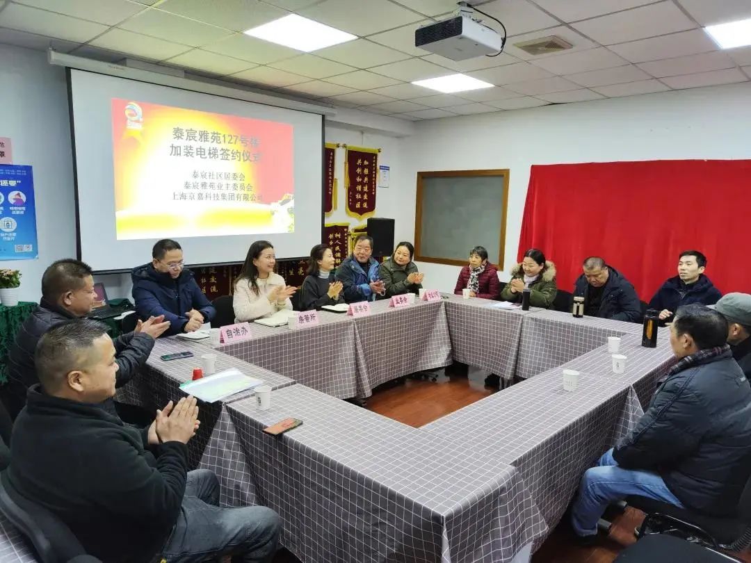 同时,为确保加梯工作的公正透明,泰宸雅苑小区127号楼加梯小组、业委会和居委会全程参与签约仪式,社区监督委员会和基层党组织纪检小组也全程参与并监督签约过程。