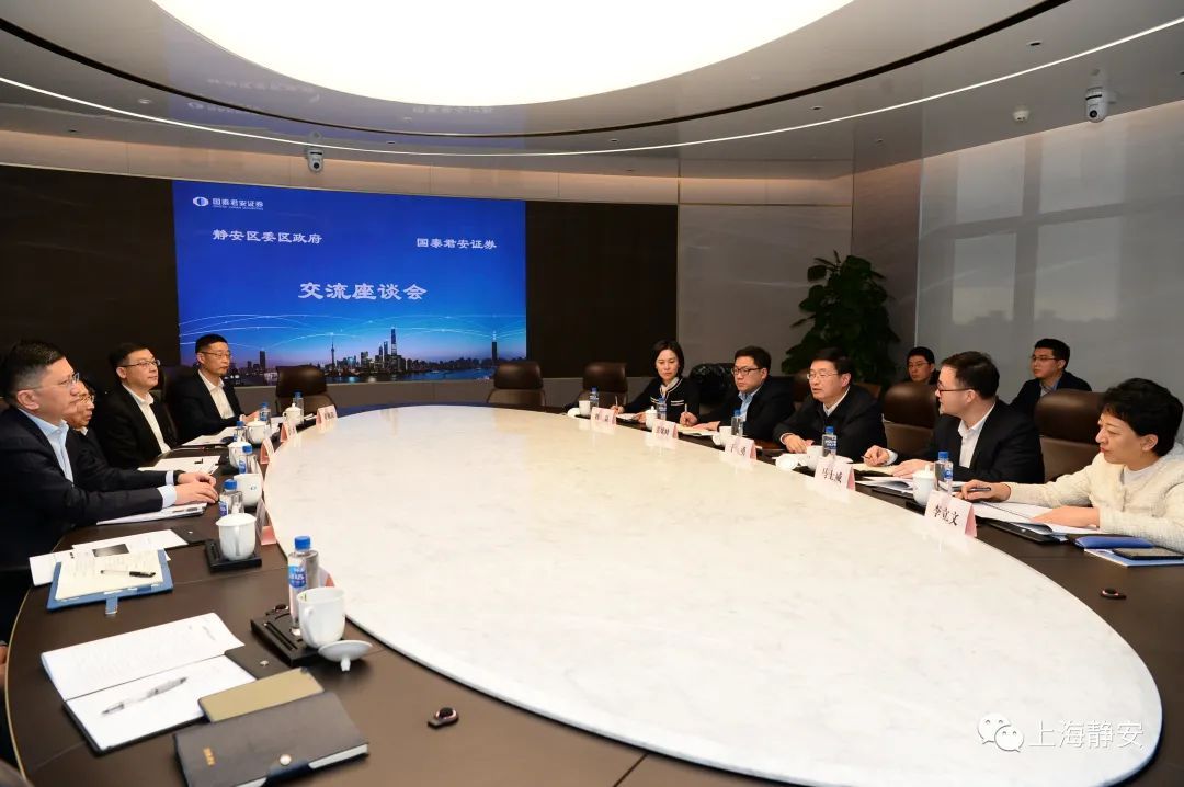 区领导一行随后来到国泰君安证券股份有限公司。国泰君安证券于1999年组建,是目前国内规模最大、经营范围最宽、机构分布最广、综合实力最强的证券公司之一。