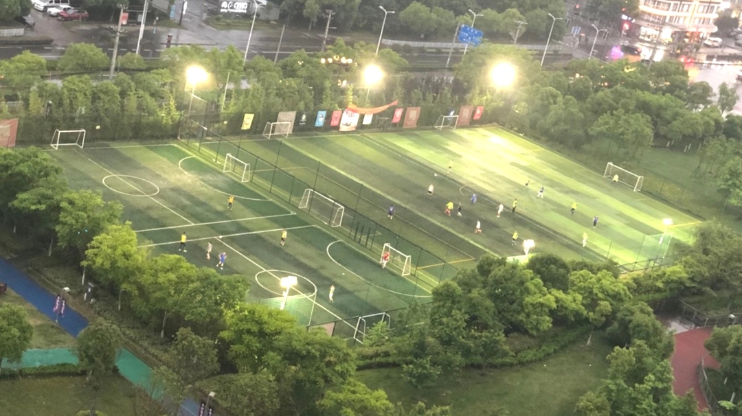 GL足球城位于宝山区泰和路2008号(近1号线共富新村站),拥有2片标准的7人制足球场,光照明亮,保证球场每个角度拥有足够的光度,专业球场角度调光,使踢球视野更舒适。草皮采用冲沙冲颗粒草皮,表面抗滑,柔软舒适,地坪平稳拥有良好的弹性和减震功能,排水系统优良。