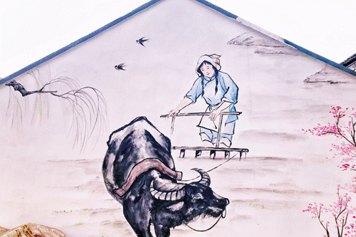 “村庄有规划,双菱如画卷。”穿梭于一排排粉墙黛瓦的农家屋舍,原本单调的墙面被一幅幅赏心悦目的墙画点缀,彩绘有岁寒四友——梅兰竹菊、农耕文化、孝道……散发出浓浓的文化气息,成为一道靓丽的风景线。