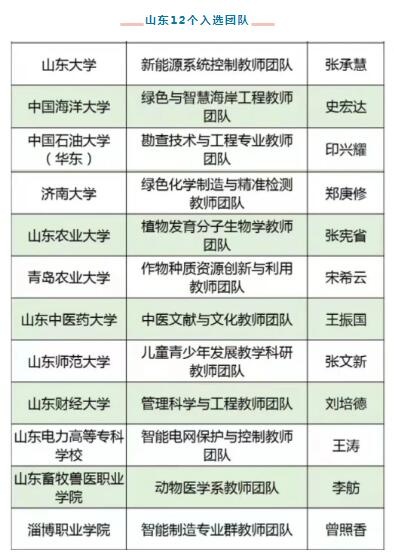 记者2月9日从山东省教育厅获悉,根据教育部日前印发通知,山东省山东大学新能源系统控制教师团队等12个团队入选第二批全国高校黄大年式教师团队(名单如下)。此次公布了200个全国高校黄大年式教师团队。