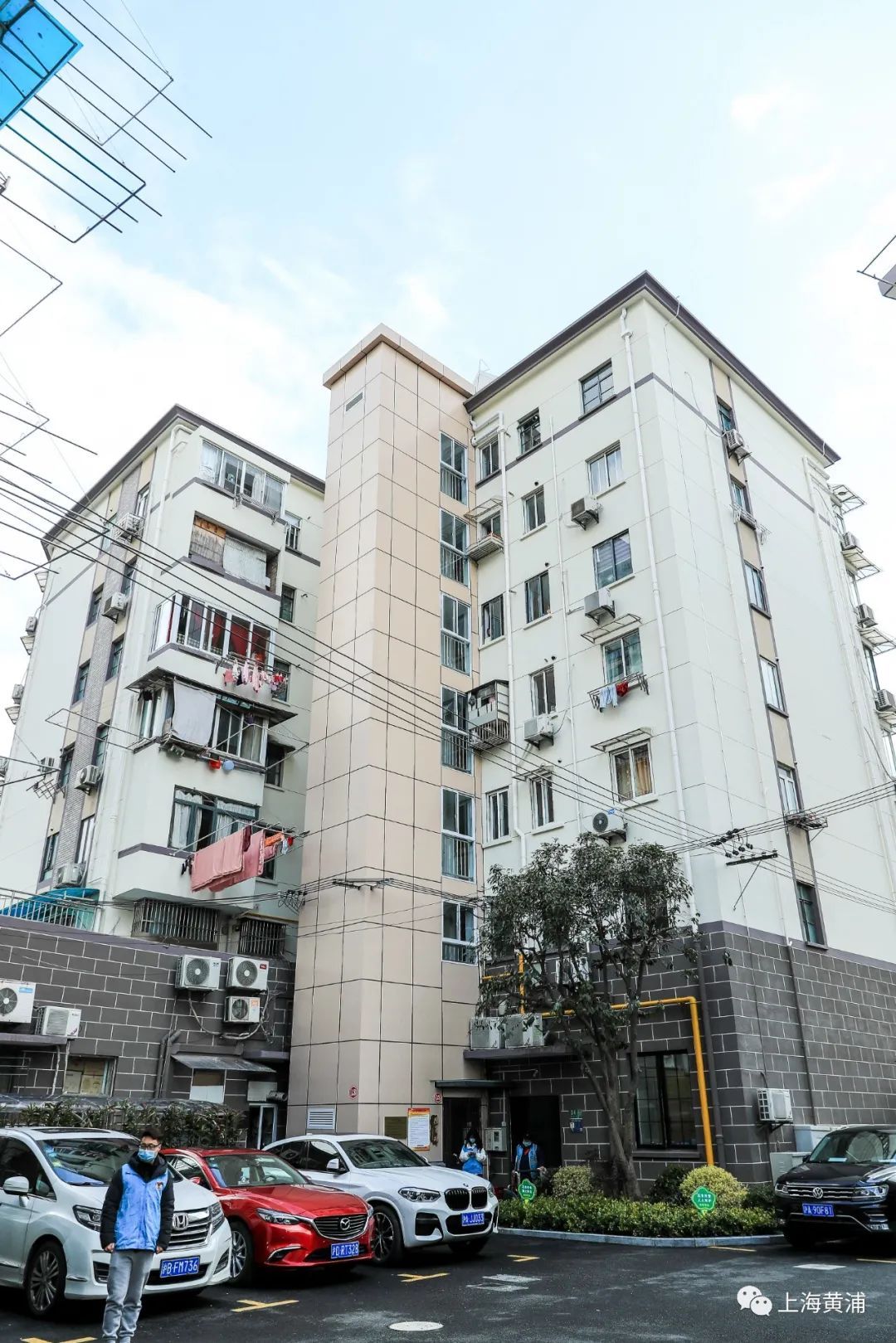 中复小区是黄浦区首个加梯全覆盖小区。2021年底,小区全部完成了屋面坡改坡修缮,外立面墙面、雨水管、空调滴水管修缮,下水管道及路面修缮、绿化改造、架空线入地等各项综合修缮工程。