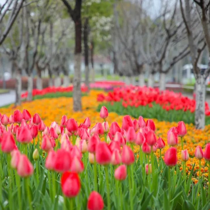 红、紫、黄等各色郁金香