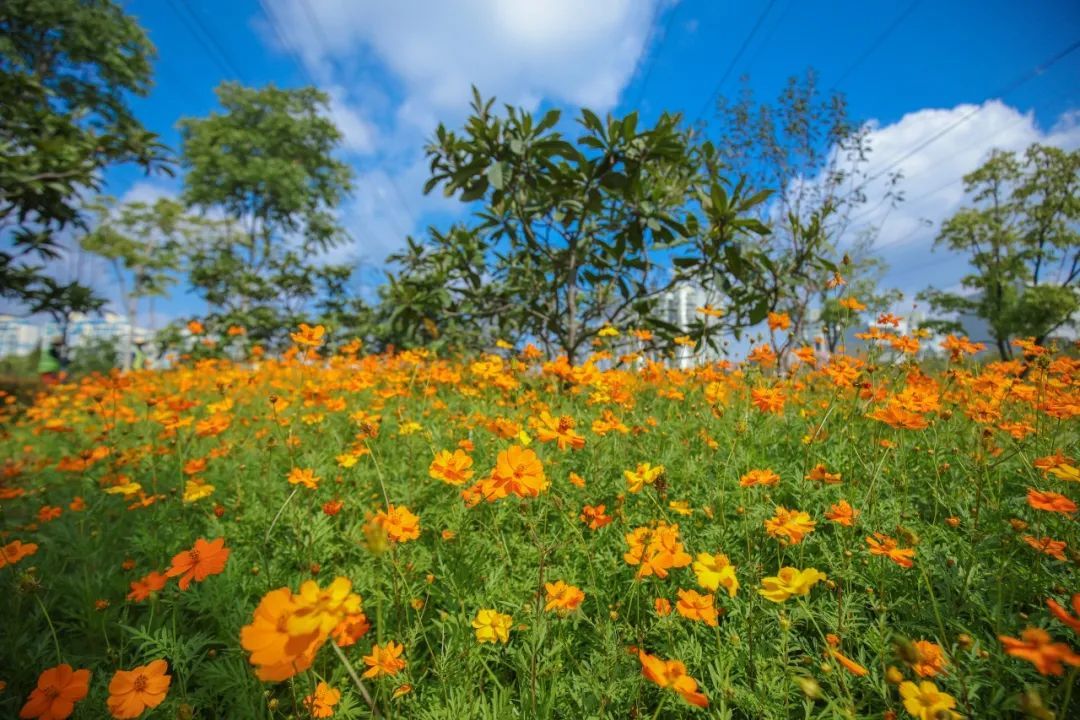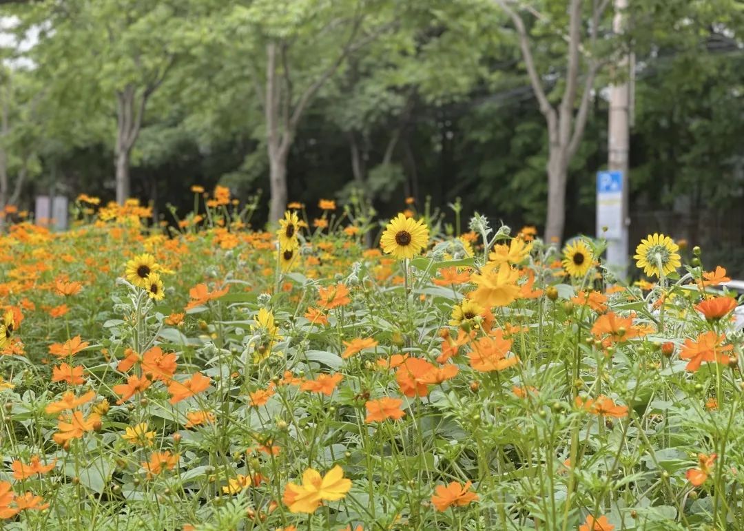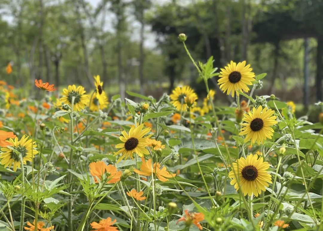 桂江路的硫华菊和向日葵进入盛花期,
