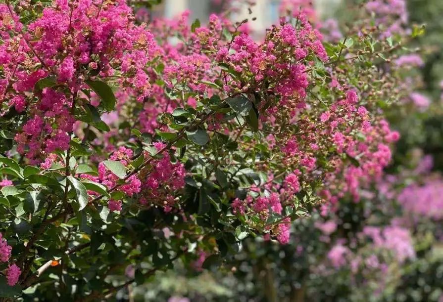 进入6月,桂江路的紫薇花陆续绽放,