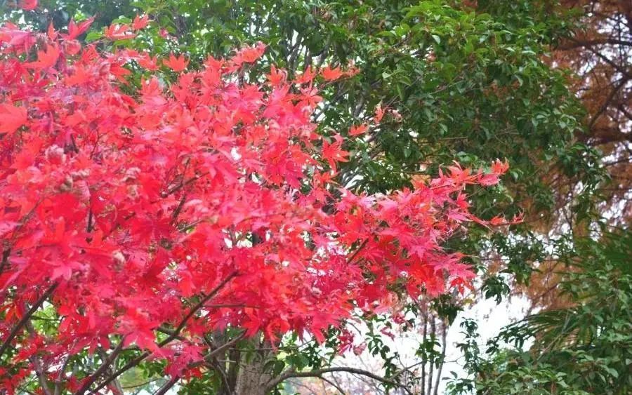 红枫、樱花、银杏和杉树