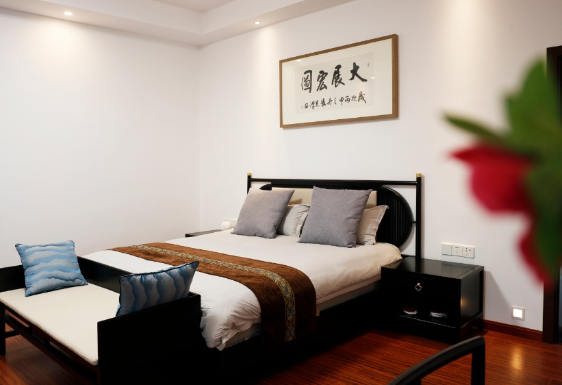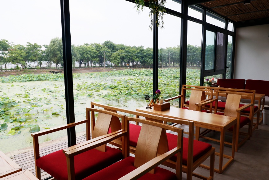 九园草堂:整体以黑、白、灰三色调组成的新中式宅院。庭院内水系环绕、听着涓涓的水声和连绵的鸟叫声,颇有几分闲云野鹤般的自在。