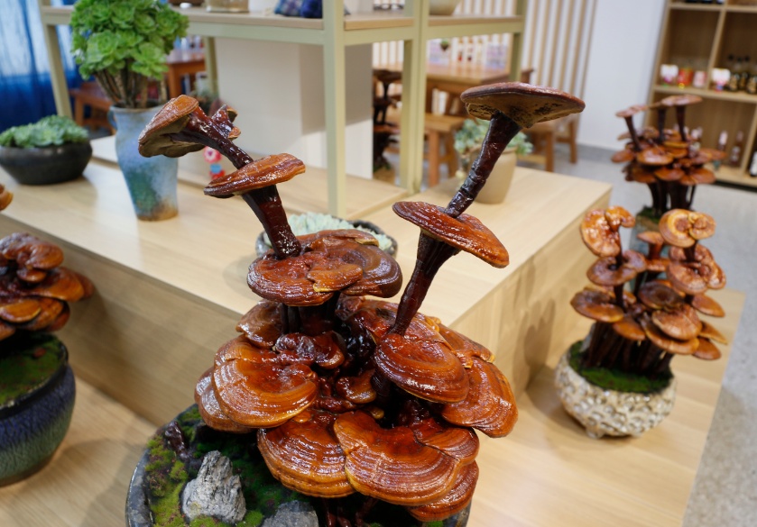 祥瑞仙草-灵芝盆景:北双村的嘉灵合作社主要种植灵芝,合作社种植灵芝50亩,主要以生产和销售灵芝破壁孢子粉为主,近年又开发了灵芝盆景特色产品,每个灵芝盆景都有自己独特的造型,其中直径较大、造型特别的售价高达上万元。