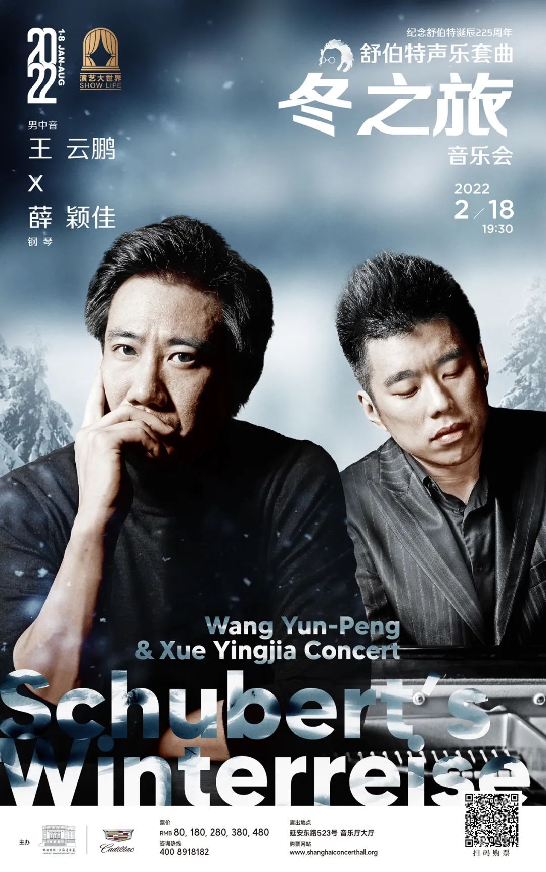 2022年2月18日,王云鹏将首次莅临凯迪拉克·上海音乐厅,与钢琴家薛颖佳联袂带来舒伯特声乐套曲《冬之旅》音乐会。