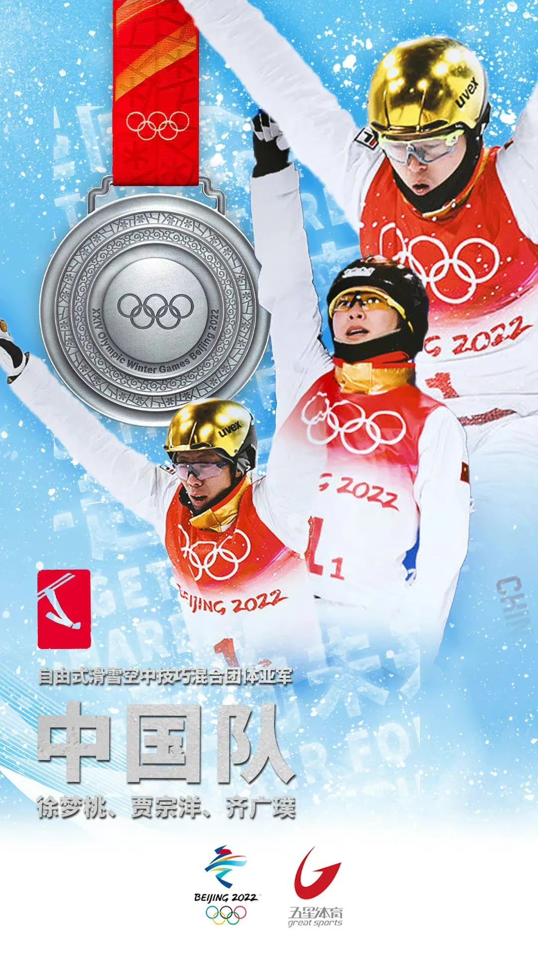 北京冬奥会开幕后第6个比赛日,各项目比赛精彩继续。在自由式滑雪空中技巧混合团体决赛中,由徐梦桃、齐广璞、贾宗洋组成的中国队收获一枚银牌。
