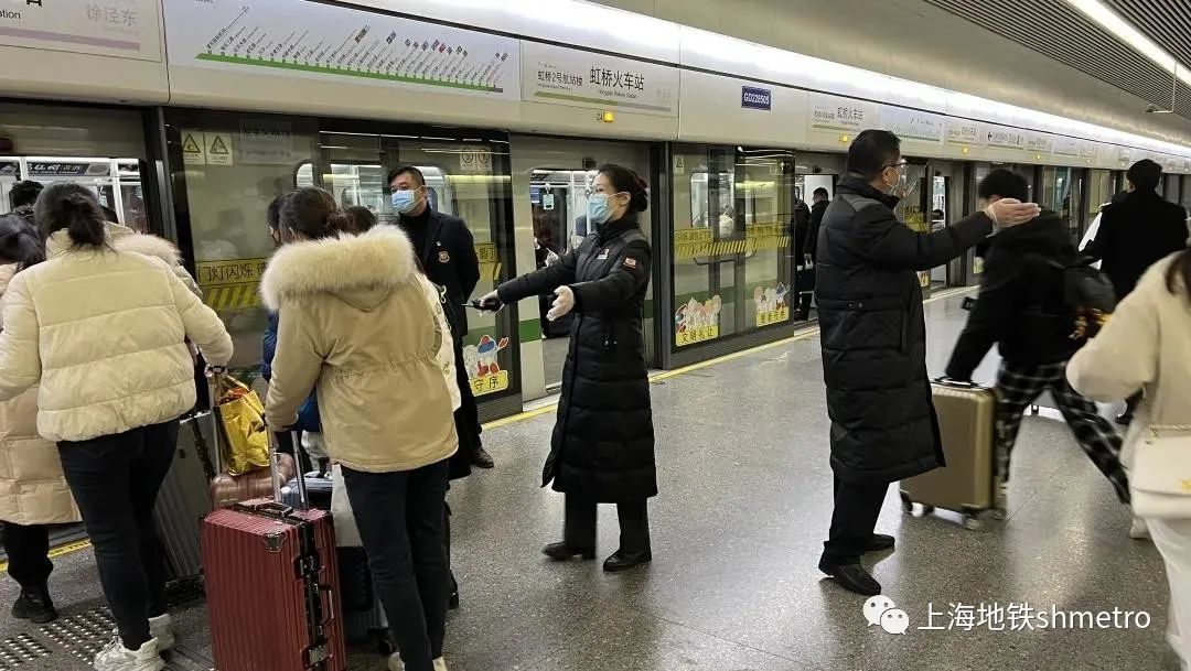 随着春节假期结束,上海地铁虹桥火车站站迎来了返程客流高峰。为做好乘客进出站及乘车秩序维护工作,虹桥火车站站加强疫情防控、客流疏导,多措并举、各显神通,全力为乘客返程保驾护航,传递返程高峰下的地铁温度 。