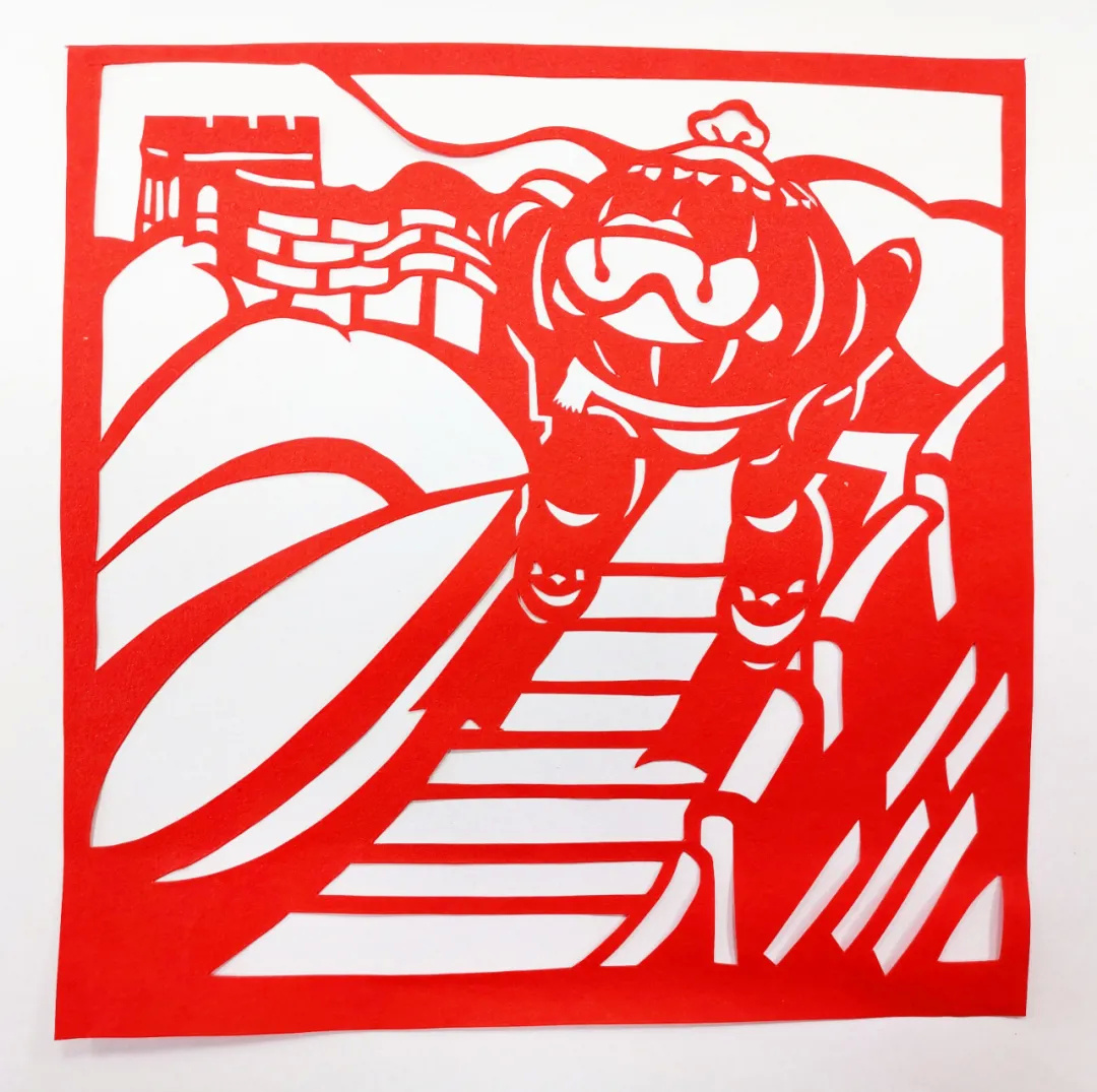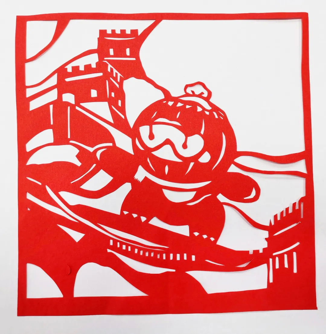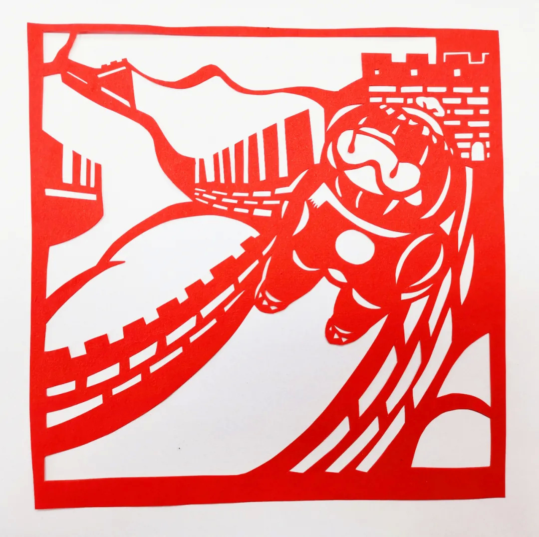 一把剪刀、一张红纸,纸片翻转间,一幅幅冰墩墩、雪容融的红色剪纸作品活灵活现地呈现在眼前。冰球、短道速滑、跳台滑雪、冬季两项……廊下中学的学生在老师的指导下,将冬奥吉祥物冰墩墩、冬残奥吉祥物雪容融与中国万里长城相完美结合,创作出极具中国文化特色的剪纸作品,阴阳刻法间还透露出冰雪运动的独特魅力。
