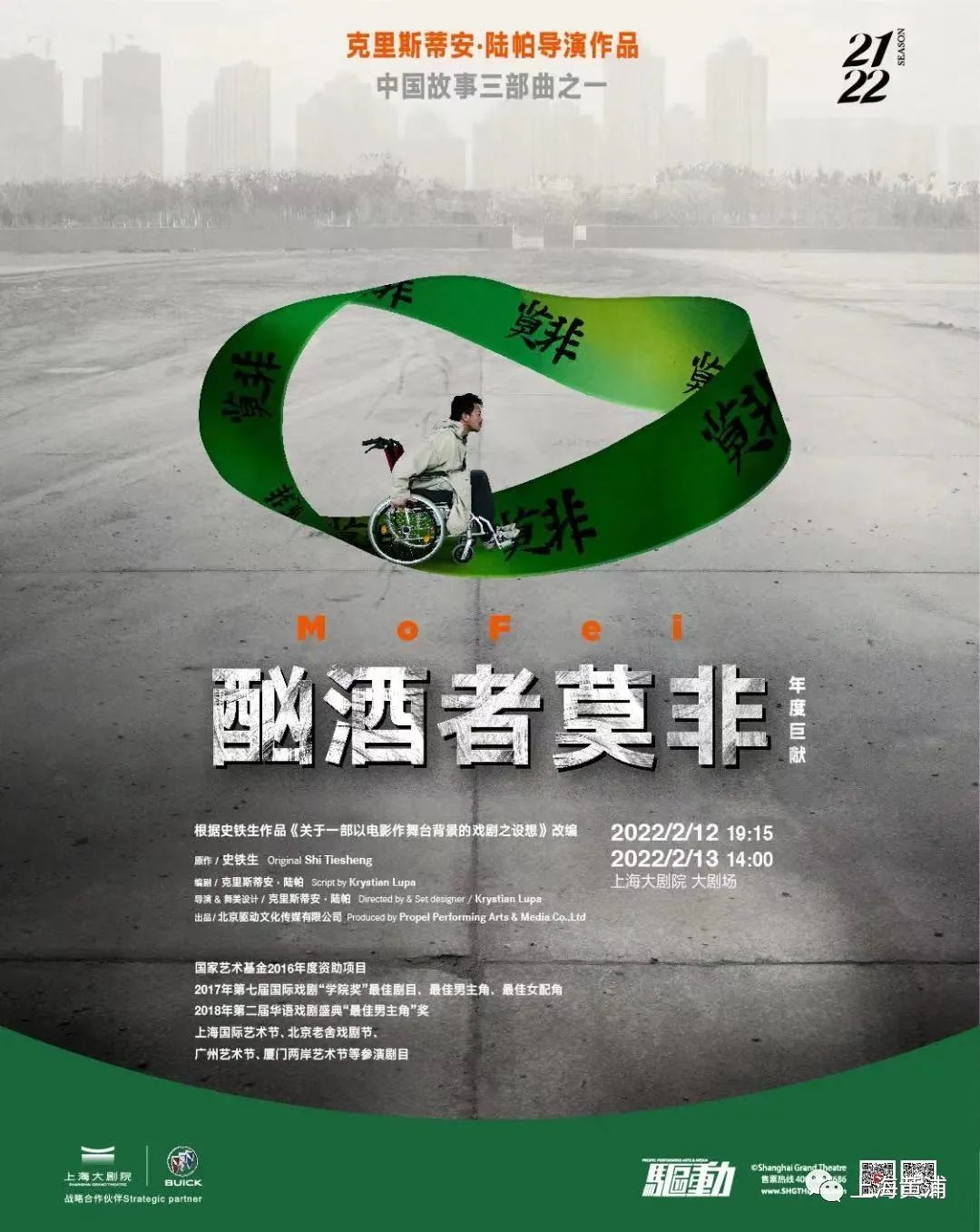 原著作者史铁生认为“它或许永远都无法在舞台上呈现”的作品,经由导演克里斯蒂安·陆帕之手,通过多媒体影像与舞台表演结合,将在今明两天亮相上海大剧院。此次来沪上演的《酗酒者莫非》是今年复排的“欧洲巡演版”,将以演艺大世界为起点,开启剧目2022年度巡演之旅。