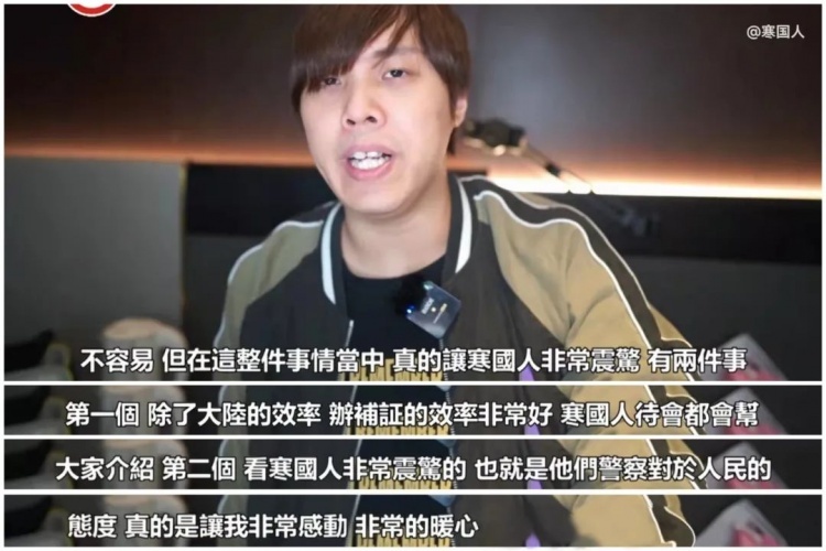近日,视频博主“寒国人”在网上发布了一则视频,分享了其摄影师好友在上海遗失补办台胞证的经历。