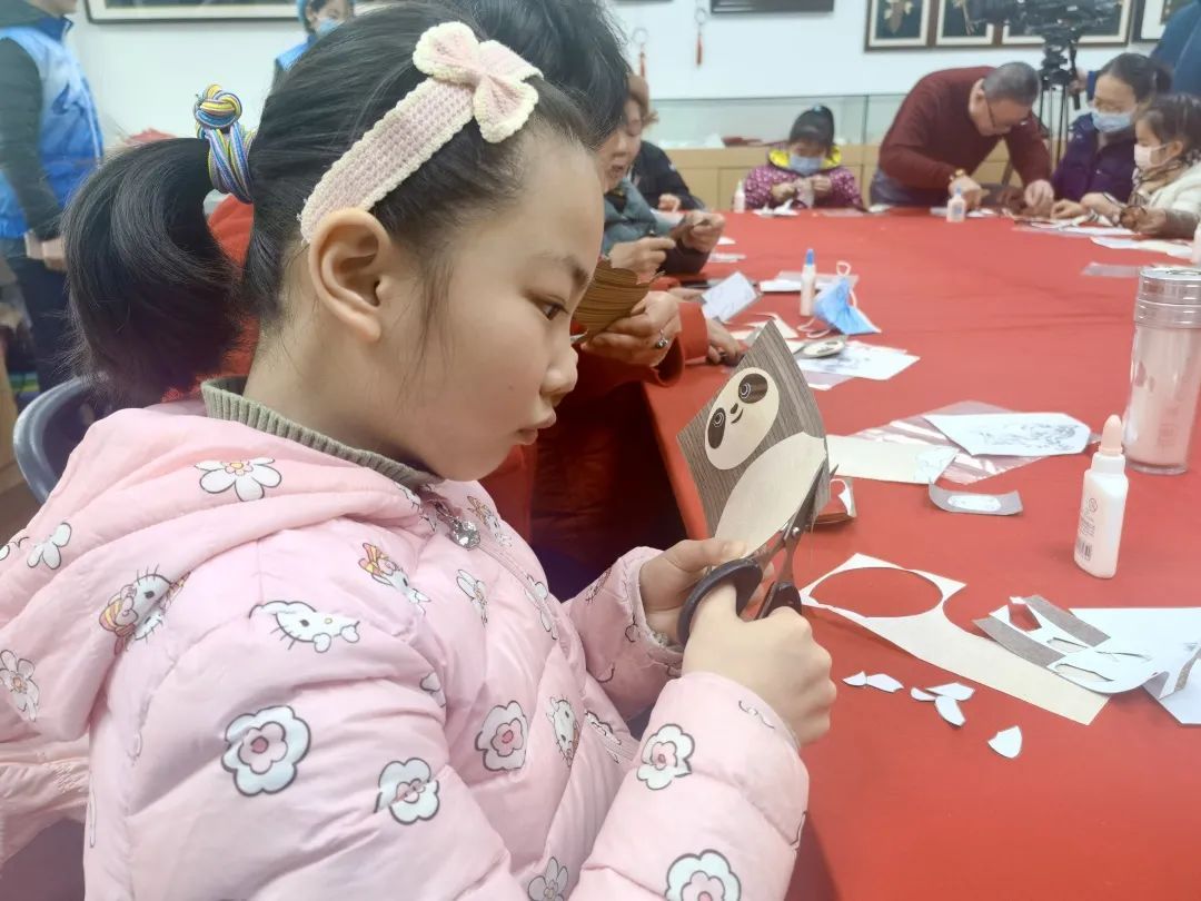 此外,刨花贴画非遗传承人也走进社区,带领大家近距离体验刨花贴画技艺。在非遗传承人的指导下,居民通过耐心裁剪与拼贴,制作了北京冬奥会吉祥物冰墩墩和虎宝宝刨花画。不少小朋友拿着自己亲手制作的冰墩墩刨花画,爱不释手,“平时就很喜欢做手工,今天剪出了一个自己最喜欢的吉祥物冰墩墩非常高兴。和大家一起开开心心过元宵节,也为运动健儿加油。”