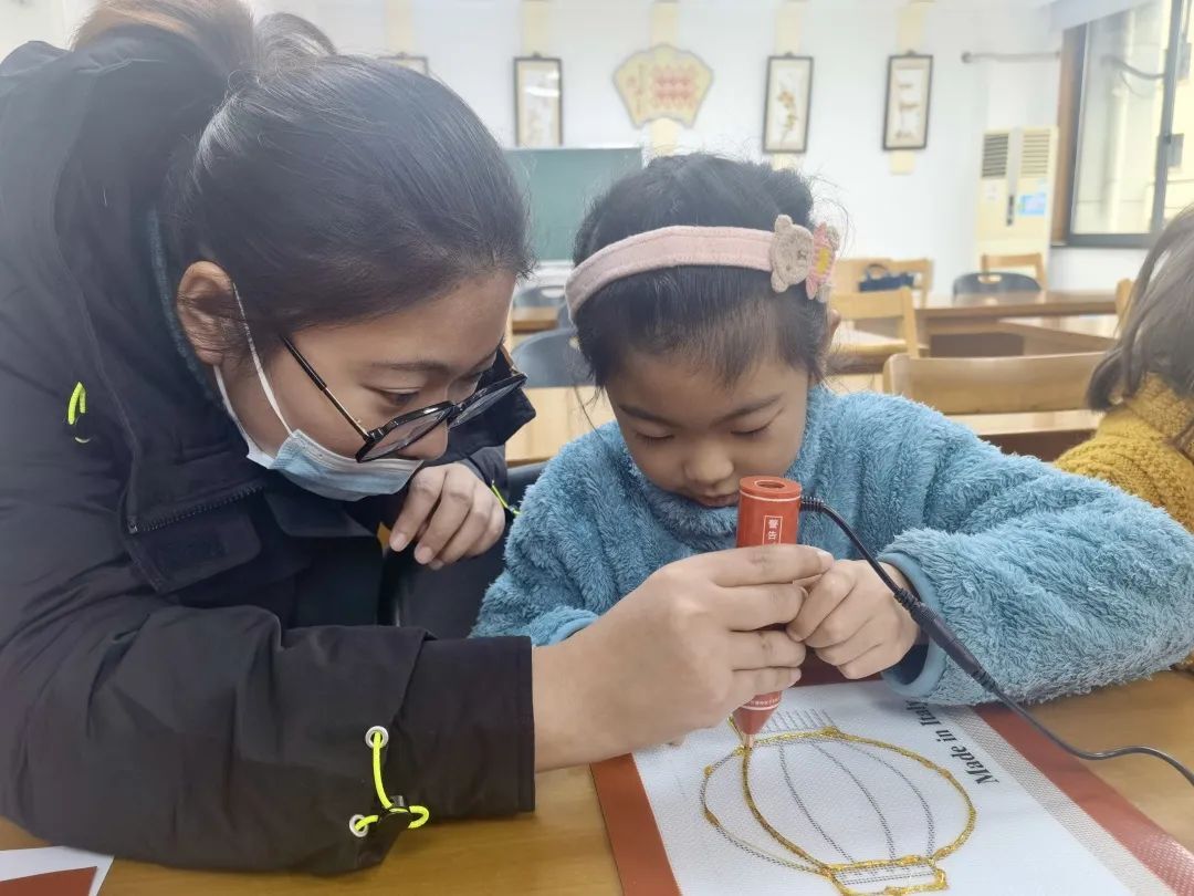 好吃又好看的糖画是孩子们的最爱。社区特意请来了专业的糖画老师,指导大家用3D糖画笔绘制糖画。小朋友们溶好糖握着笔,随着缕缕糖丝的飘洒,在硅胶垫上描出虎宝宝、灯笼等形状,一笔一画尤为认真。接着在老师的帮助下粘上竹签,捏着竹签将糖画拿起来,一幅晶莹剔透的作品就完成了。看着自己的糖画作品,馋嘴的小朋友迫不及待地舔上一口,甜甜的。