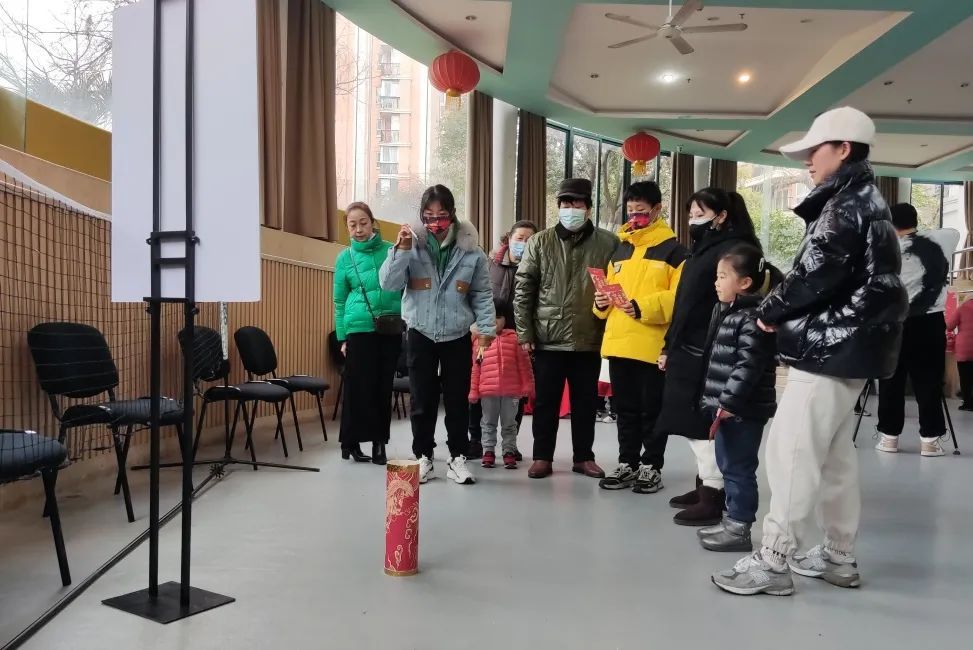 游园会共设置了7个小游戏,包括扎兔子灯、猜灯谜、套圈、投壶、知识竞答、新春剪纸等。有的居民聚精会神猜灯谜,有的满头大汗地踢毽子,还有的默契十足地捆绑跑……传统又好玩的怀旧老游戏让居民们感受到浓浓的节日气氛和社区大家庭的温暖。