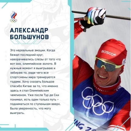 俄罗斯奥委会官方网页上发布了在北京冬奥会越野滑雪男子双追逐赛上,获得金牌的俄罗斯奥委会代表团选手亚历山大·博利舒诺夫的获奖感言。他说:“有些难以置信,当我滑到最后一圈时,我的眼泪瞬间涌出,我拿到了金牌。我想说,感谢中国,让我有机会在此成为奥运冠军。”