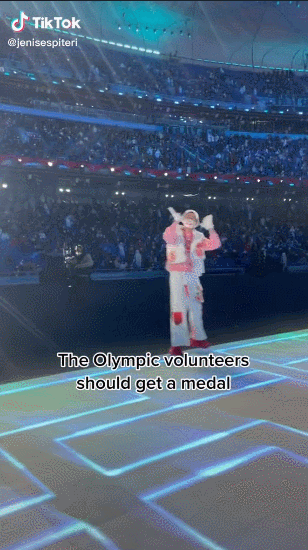 “这些志愿者也值得一块奖牌,他们在全世界运动员入场的两个小时中一直尽职尽责,谢谢你们让这场盛会尽善尽美。”