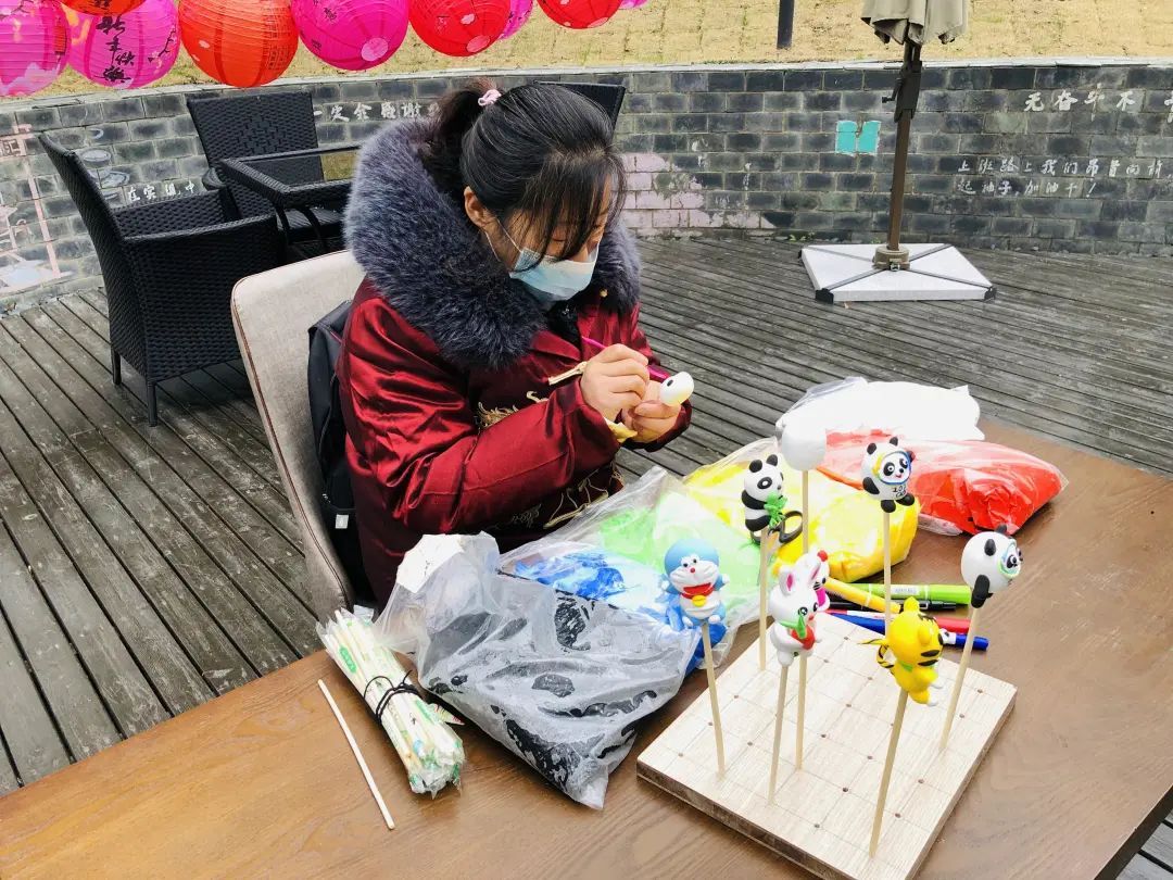 别看面积不大,微缩版元宵庙会功能可一点儿也不少。不但可以猜灯谜、做花灯、包汤圆,还有“捏面人”“画糖画”“中国结”“糖葫芦”等非遗手工项目。