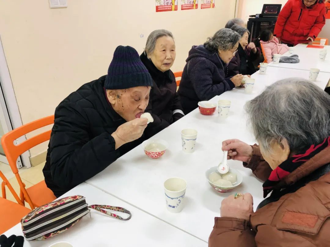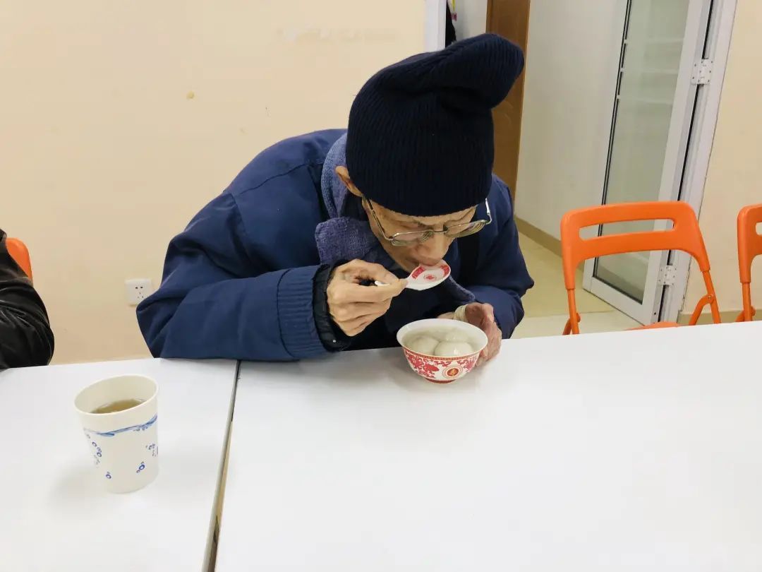 中午11点,一碗碗热气腾腾的肉汤圆准时上桌。受邀前来的社区老人一边品尝着亲手制作的汤圆,一边话起了家常。现场一片欢声笑语,处处洋溢着节日的氛围,也让老人们倍感温馨。