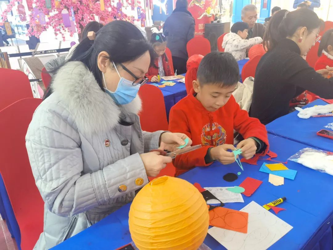 今天,五角场街道联合五角场万达广场举办了一场“点亮元宵”活动,大朋友和小朋友们现场自制“虎头”花灯,庆祝元宵佳节。