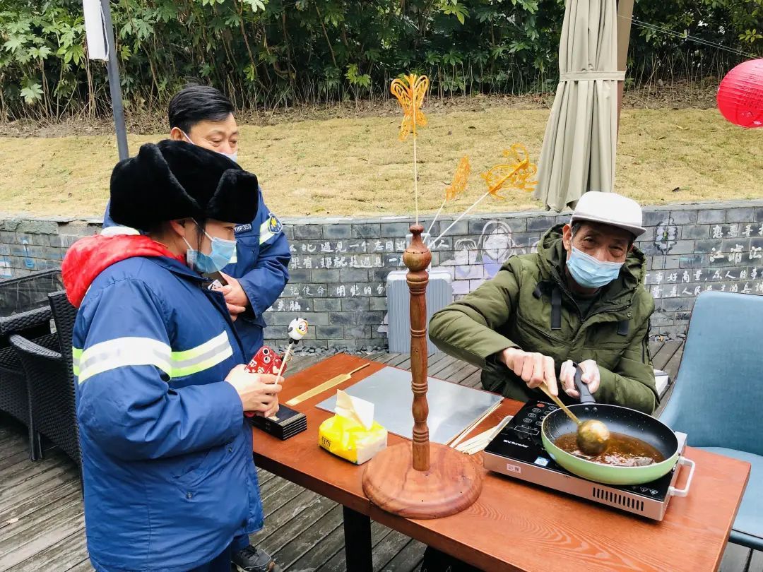 受邀前来逛元宵庙会的社区居民、外卖小哥、环卫工人,全都兴致勃勃地体验各式各样的传统民俗,感受浓浓的节日氛围。