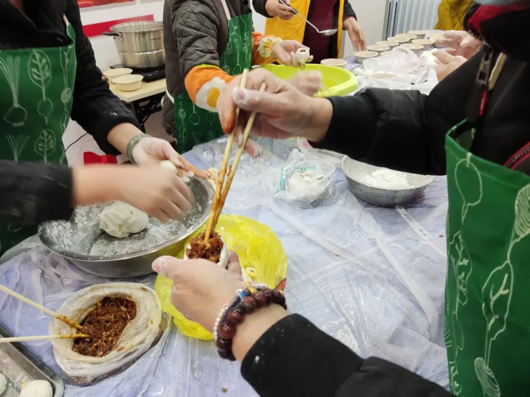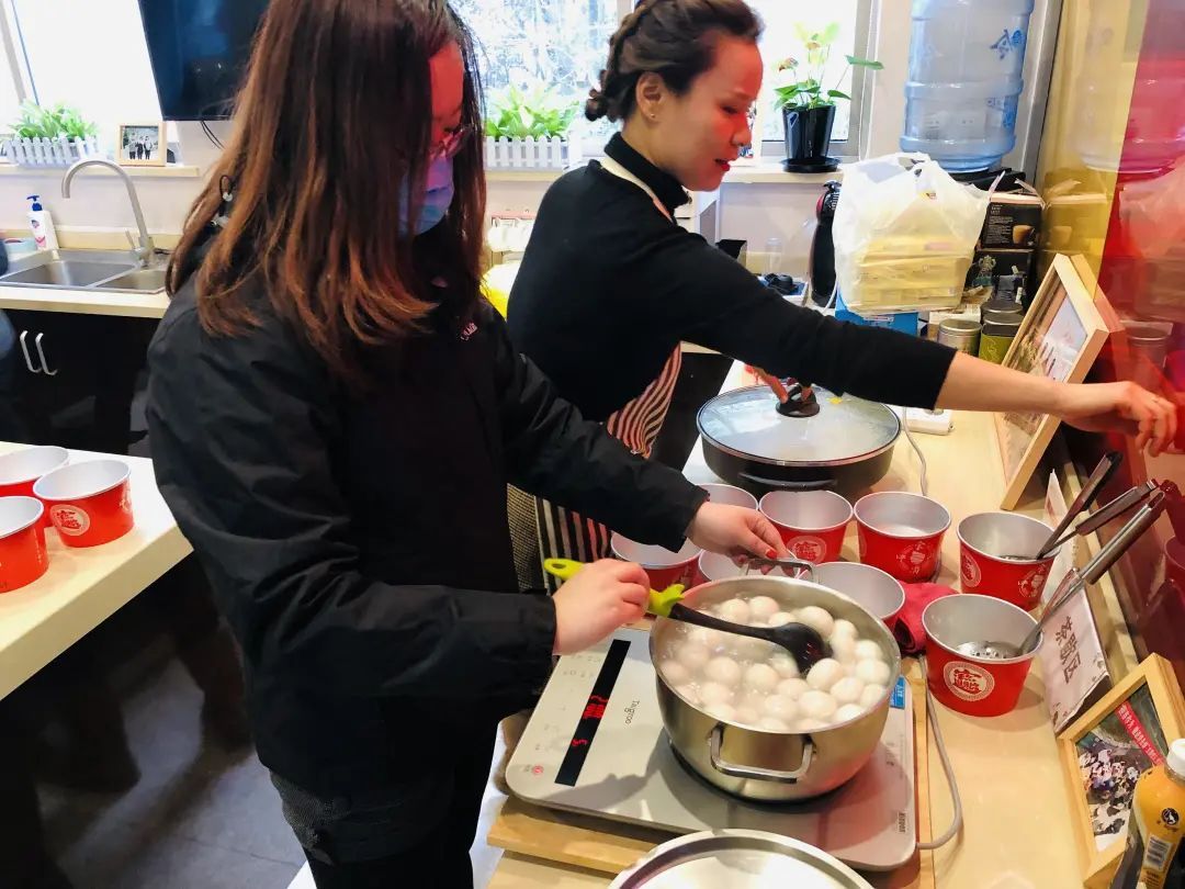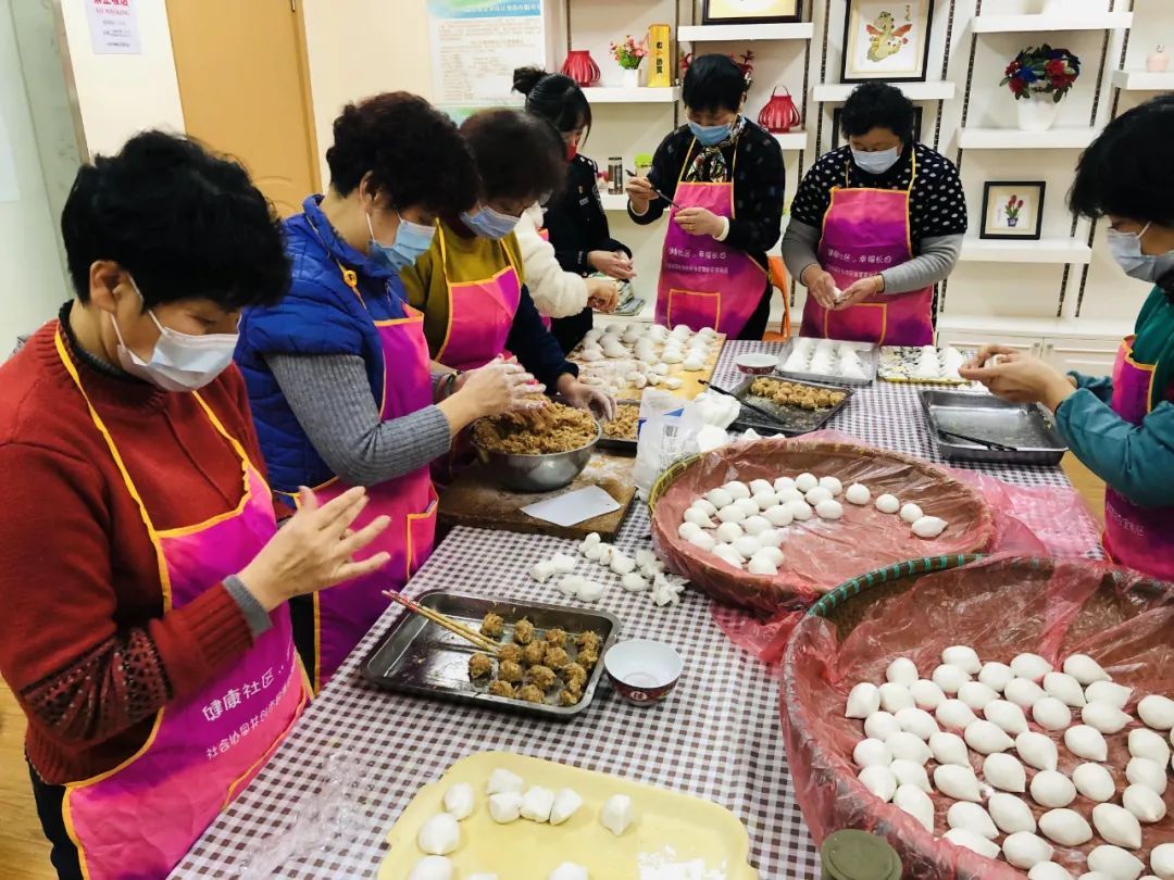 还有志愿者们分工合作做汤圆,又大又圆的鲜肉汤圆被送到街道敬老院,让里面的老人感受到来自社区大家庭的温暖。