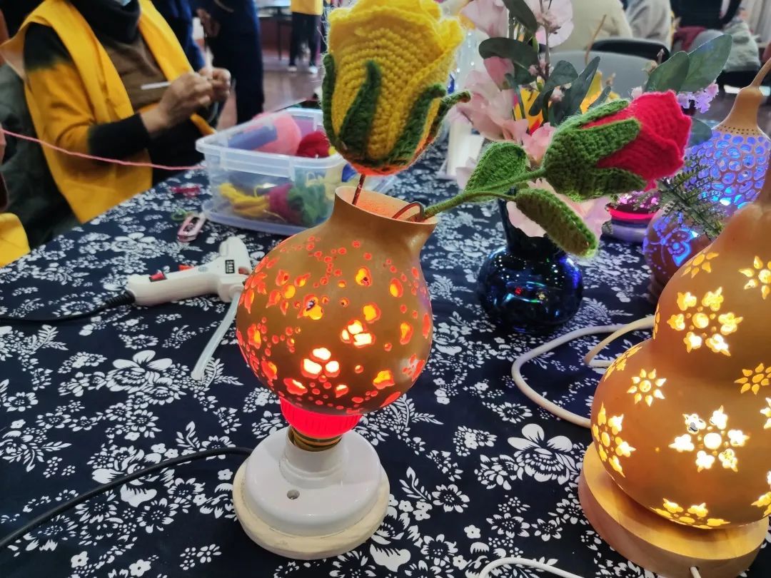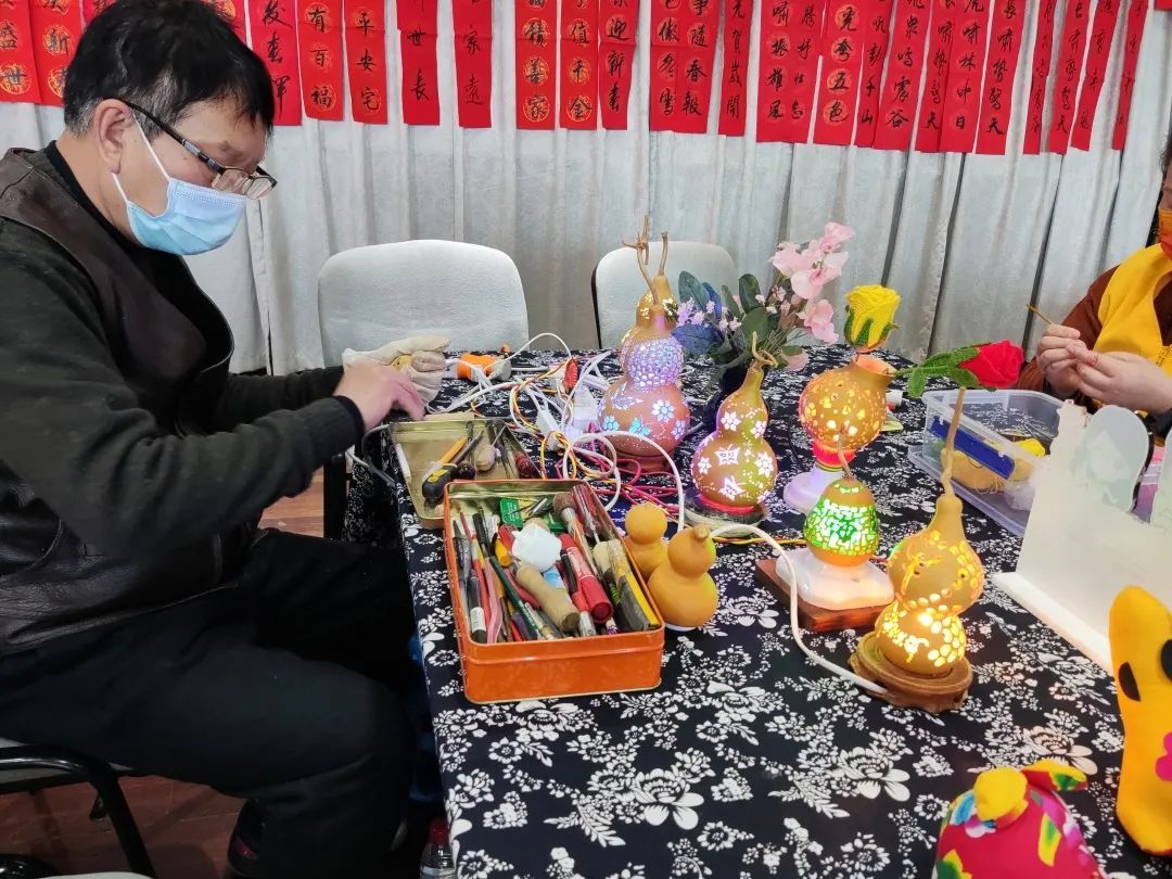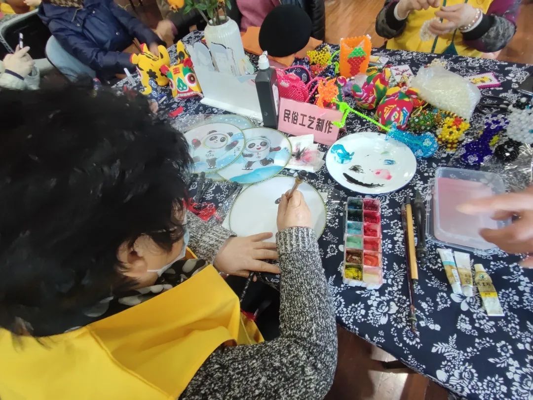 现场编织冬奥明星“绒耀之花”;迷你版“旱”冰壶模拟冰雪竞技“冰壶”运动;冬奥顶流“冰墩墩”画在传统画扇上;手工制作布艺老虎、兔子灯,为元宵节增添祥和、欢乐的氛围,洋溢着浓浓的年味儿。