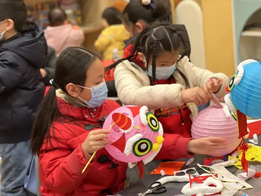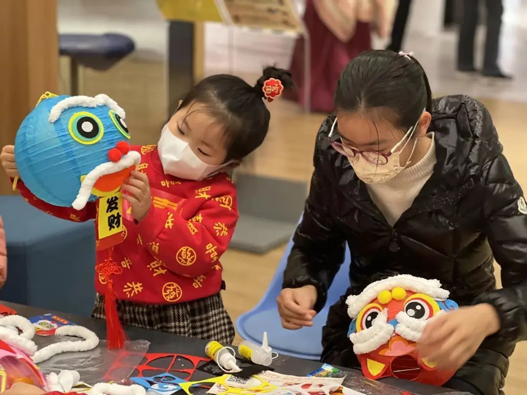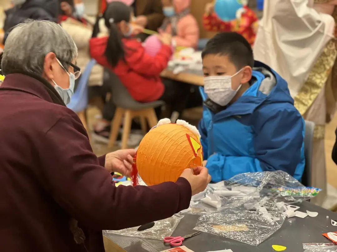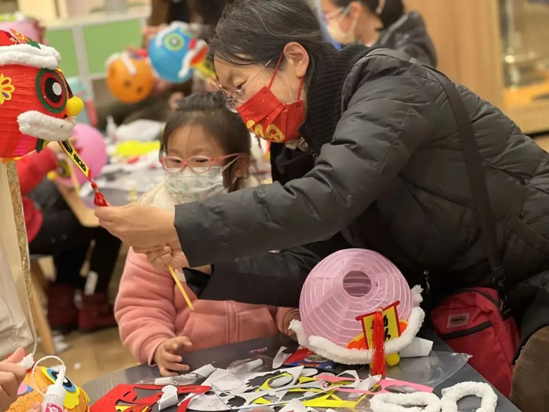 拆封、剥离、组装、粘贴……孩子们和家长围坐一起,跟着志愿者老师的节奏,忙得不亦乐乎。没多久,一个个充满创意、“虎头虎脑”的老虎灯笼就做好了。“相比外面卖的灯笼,自己做的手工灯更具特色,更彰显民俗文化。”家长提着孩子做的灯笼说,“感觉自己回到了小时候。”