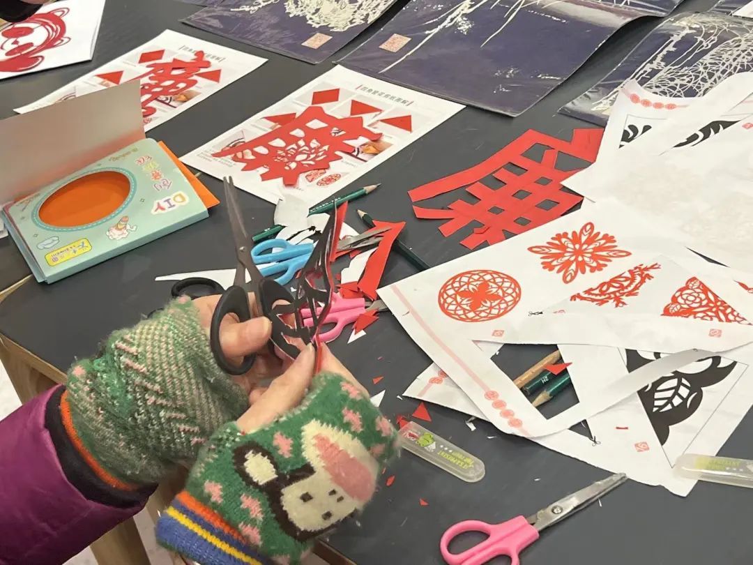民俗非遗活动体验区内,还有剪纸大师在进行创作和传授。记者了解到,线上灯谜活动2月13日就开始展开,只需扫描二维码就能竞猜,更是吸引了诸多社区居民的参与。
