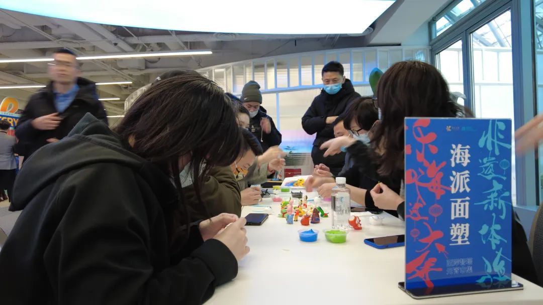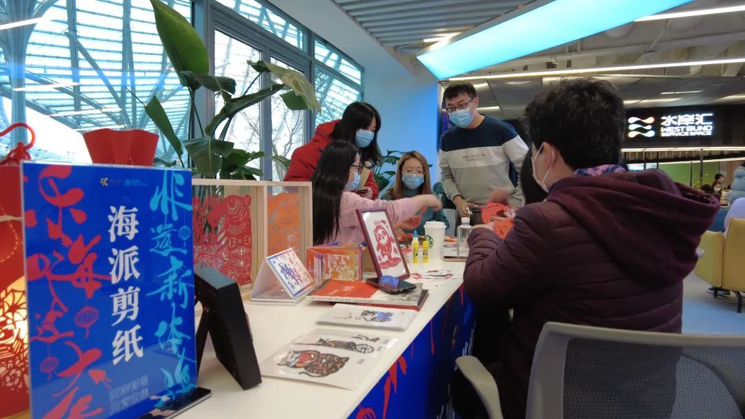 为了让上班一族也体会到正月十五元宵节的热闹,今天(2月15日)中午,西岸智塔举办了一场“乐嗨过大年 非遗新体验“的国潮@AI元宵市集。海派剪纸、海派插花、海派面塑等多名非遗新生代传承人,带着他们创新的非遗体验项目来到了位于西岸智塔东塔楼五楼的水岸汇,给在这里工作的白领们带来了非遗国潮新体验。