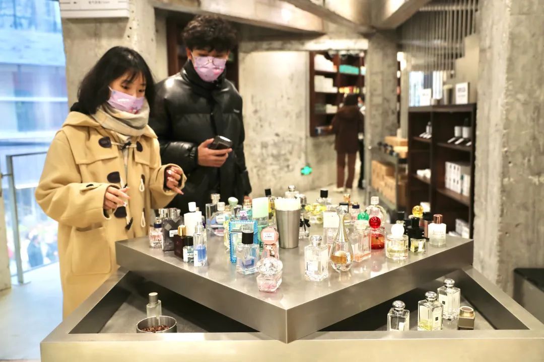 记者在店里随机采访的顾客中,就有很多人表示,自己是看了别人网上发布的Vlog以后慕名而来。“我们看了视频觉得这里蛮好的就来了。”一对结伴逛店的闺蜜告诉记者,主要感兴趣的是店里种类丰富的旅行装护肤品和新晋的海外小众品,“顺便还可以在楼下喝杯饮料。”