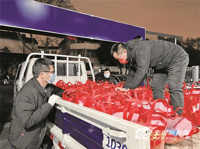 “你们都是抗疫小勇士!加油!”“梁溪守护你……”昨晚(15日)近7点,记者来到位于江南停车场的梁溪区物资保障组时,工作人员正把为隔离点学生准备的爱心礼包搬上卡车,礼包里牛奶、坚果、饼干、笔、书等物品一应俱全,一句句温暖的祝福和鼓励的话语写在了心形卡片上,随着礼包送到孩子们身边。工作人员一边跟记者说着,一边不停地忙活着。
