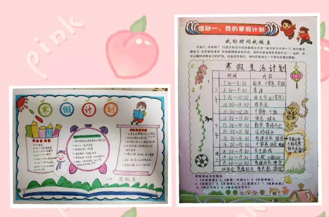 为培养学生运用“三学会”自主成长原则,即学会规划、学会自律、学会反思,学校依托全员导师制,学生在导师们的带领下,结合学校设计的寒假活动单和自己的实际情况,对假期生活内容进行“再加工”,制作了专属于自己的寒假计划。学生们对自己每日的作息时间安排、丰富多彩的生活与娱乐计划、家务劳动和运动健身等方面都规划得井井有条。
