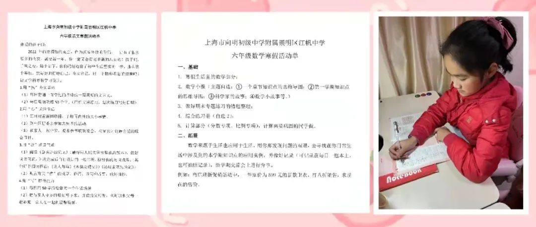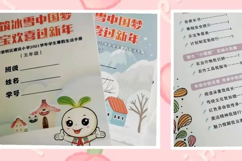 明天,新学期就要开始,在刚刚过去的“ 双减”后的首个寒假里,崇明各中小学将寒假作业进行“加减法”,“写写写”的减少了、“玩玩玩”的增多了,这些走“新”更走“心”的作业,让孩子们惊呼:“太爱啦!”