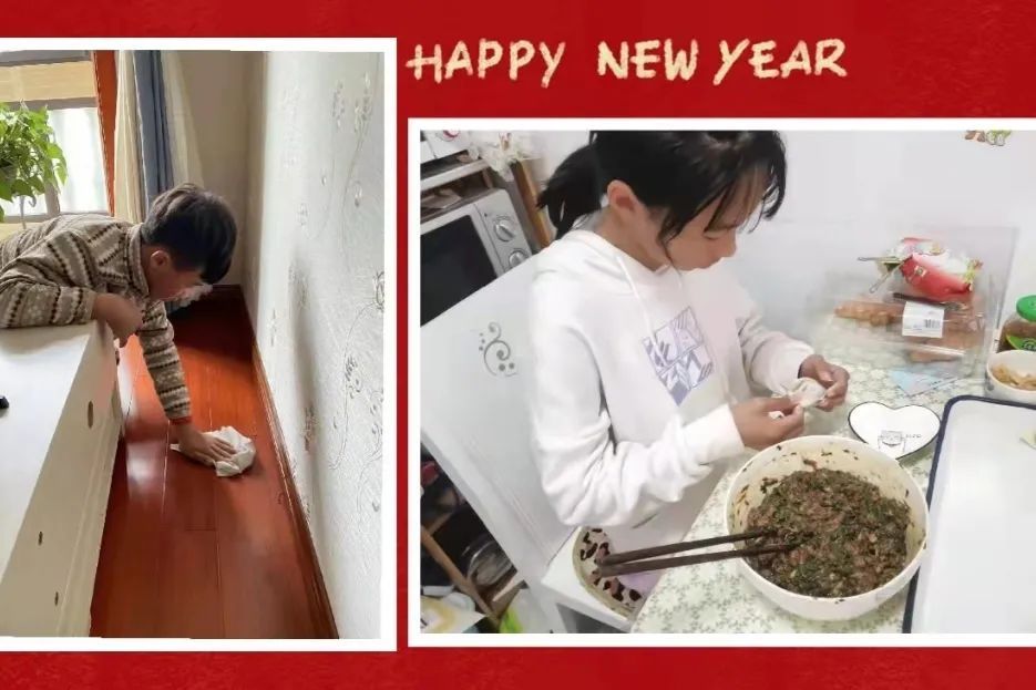农历小年这一天,亲子一起打扫卫生,让家里焕然一新,从采荠菜开始学包馄饨,其乐融融地迎接春节。