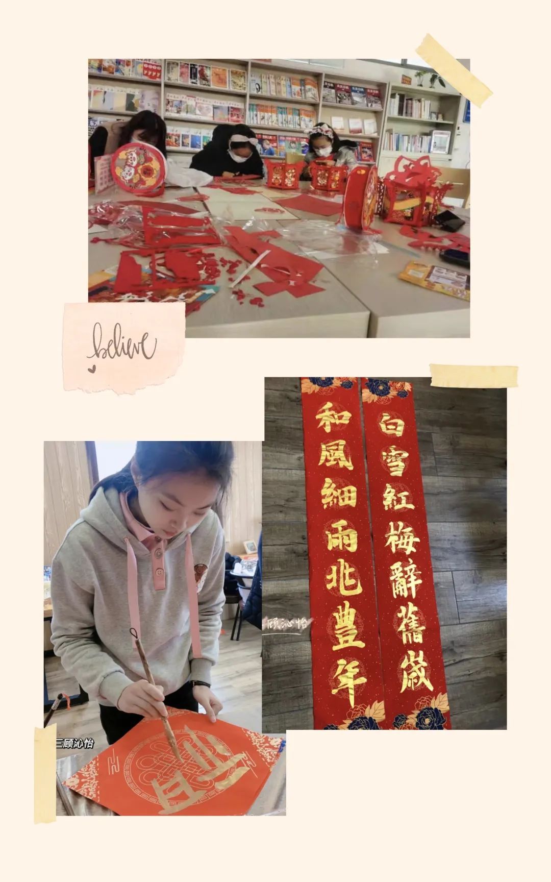 重体验。同学们通过写春联、剪窗花、写“福”字等一系列活动,体验我国传统文化,深入学习传统知识,既陶冶了情操,又增强了自己的动手能力!