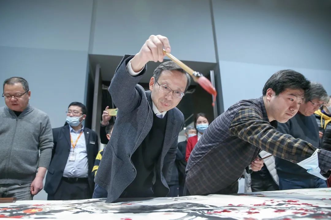 最后,上海中国画院副院长江鹏挥毫写下画名《春意盎然》,现场艺术爱好者们赞叹不已,展览中的传统书画作品与笔绘活动相互映衬,活动现场热闹温馨。