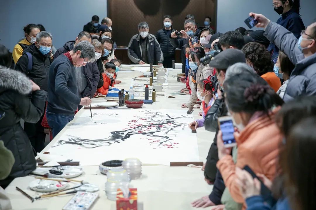 上海中国画院的老中青三代画师即兴挥毫泼墨,共绘一画,这场别开生面的元宵共创点燃了现场游客市民的艺术热情。