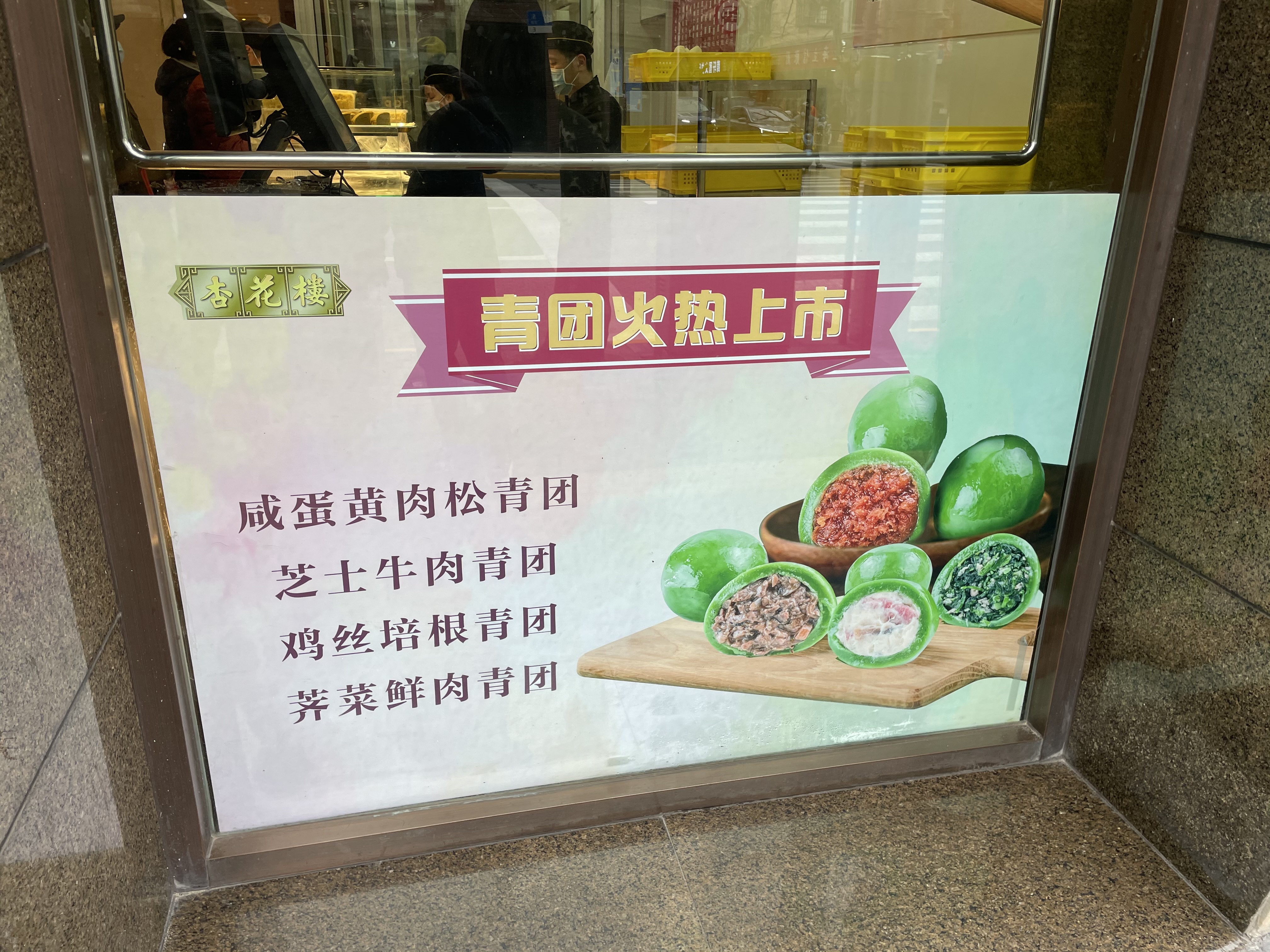 今天一早,记者在位于福州路的杏花楼总店内看到,青团已正式开售。