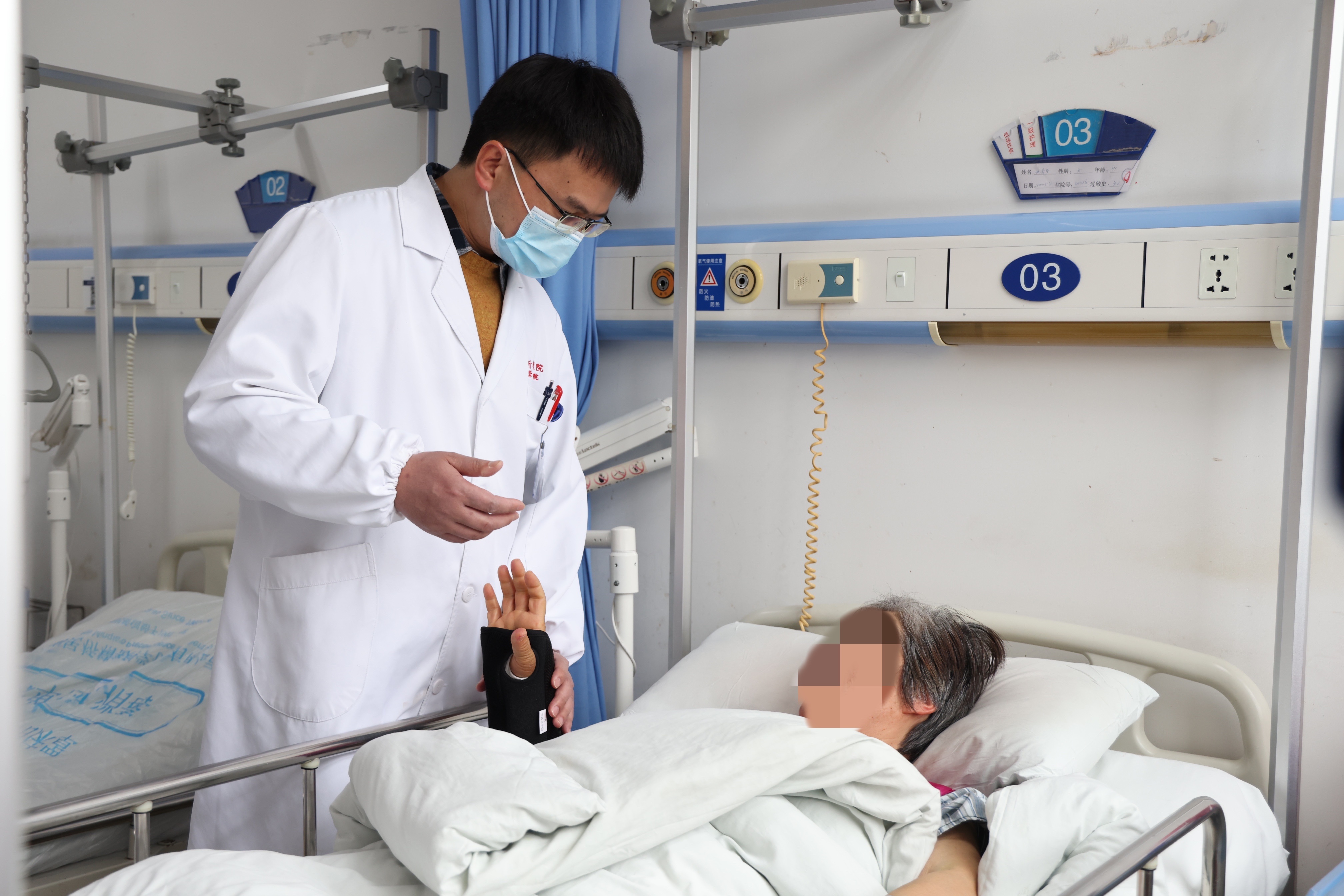 抬眼间,一束光跟随打开的病房门照进屋内,逆光走来的床位医生刘昌海又来询问沈阿姨的身体状况,还不忘做一番叮嘱。“阿姨,现在手指可以常活动活动,帮助恢复。”一声声叮嘱,一句句鼓励,让沈阿姨铮然泪下:“没想到,在我情绪低落到冰点时,有人给我送来了温暖。”
