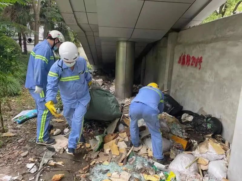 “微治理”为期1周,出动工作人员逾50人次,先清理腐败发臭的湿垃圾,再清理堆积的干垃圾,最后集中清运偷倒的建筑垃圾和大件垃圾。清理期间正逢上海高温,天气闷热,酷暑难当,工作人员冒着炎热,忍着恶臭奋战,累计清理出垃圾超过2吨,治理区域面积超过100平方米。