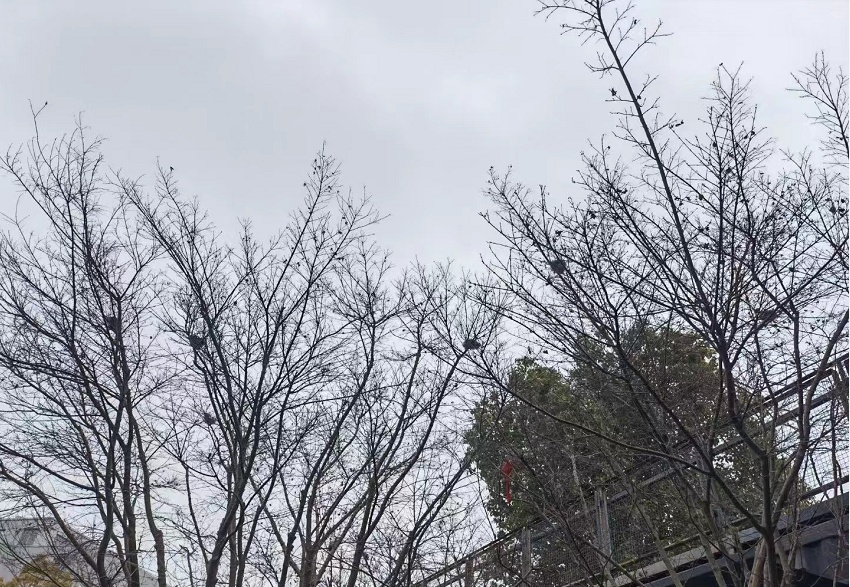 随着春天的临近,最近,在创谷工作的员工们欣喜地发现,位于长阳路入口创厢周围的枝头树丫上,坐落着许多新筑的鸟巢,细细一数竟有11个!这对长期生活在“钢筋水泥”建筑里的都市人来说,多少有些新奇。