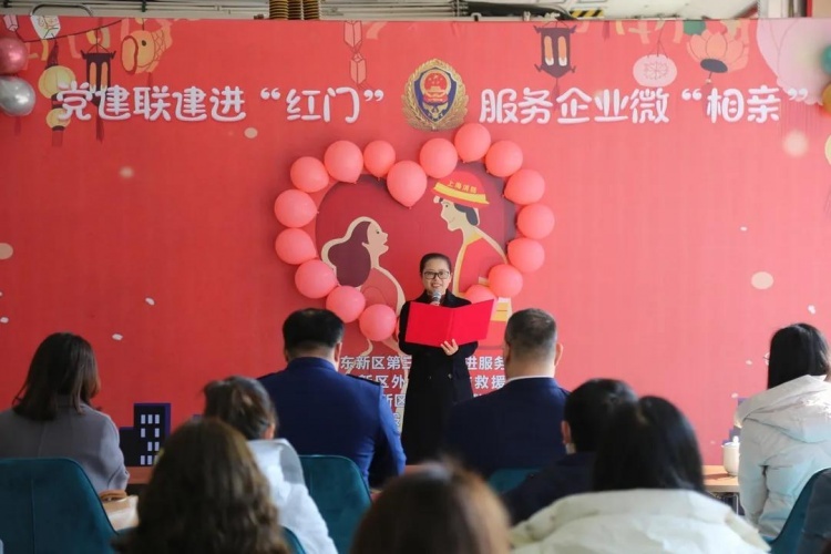 这是三中心携手浦东新区消防救援支队外高桥大队、佳农食品控股(集团)股份有限公司和佳昌实业有限公司共同开展的一场联谊活动,以“党建联建进‘红门’ 服务企业微‘相亲’”为主题,为60名优质单身青年搭起了“鹊桥”。