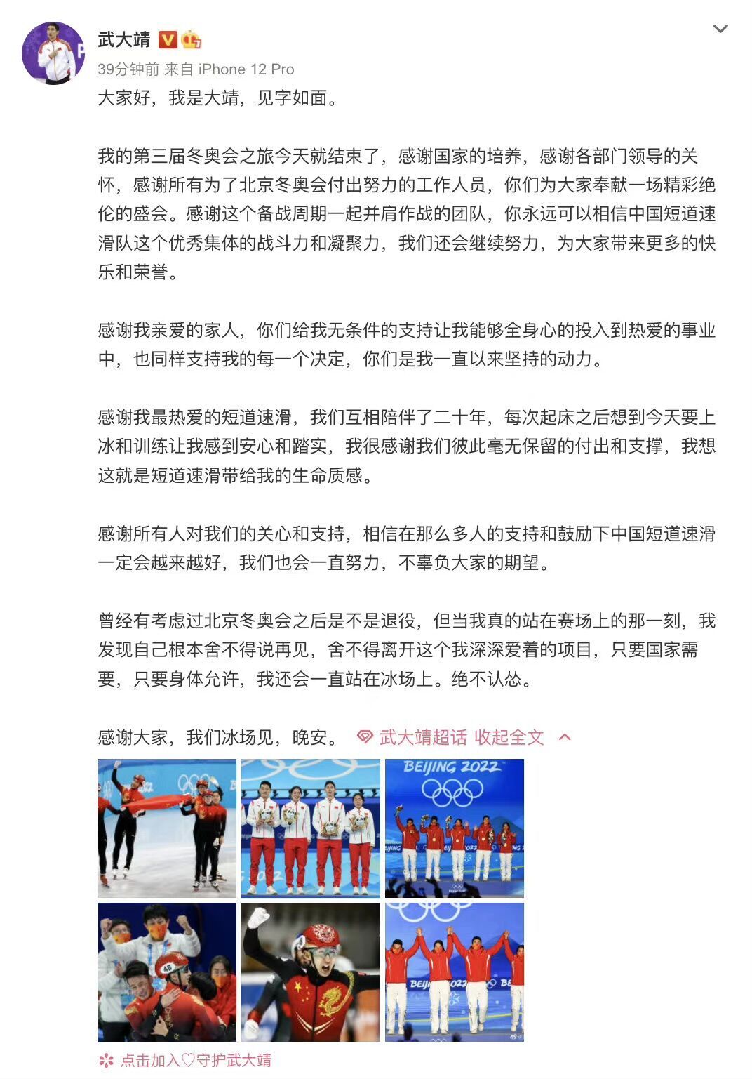 也许未能问鼎,但拼搏的本身就值得赞美。赛后,武大靖在微博发文,只要国家需要身体允许,还会一直站在冰场,绝不认怂!